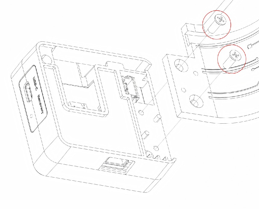 将包装内的透明灯效件拿出,用两颗附赠的M3*8沉头自攻螺丝固定在控制盒上