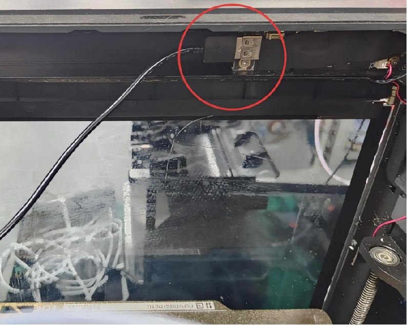 将USB电源线插入到打印机的USB-A口,USB-A口的位置在P1打印机门板的上方凹槽内,可以把打印机的盖板拿下来进行查看和操作。