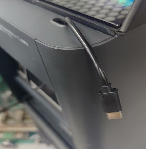 将USB线的另一端的Type-C端口从打印机右上方的小孔穿出来。