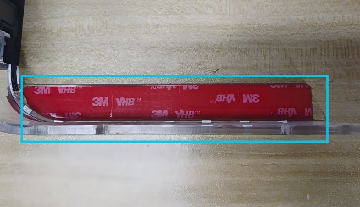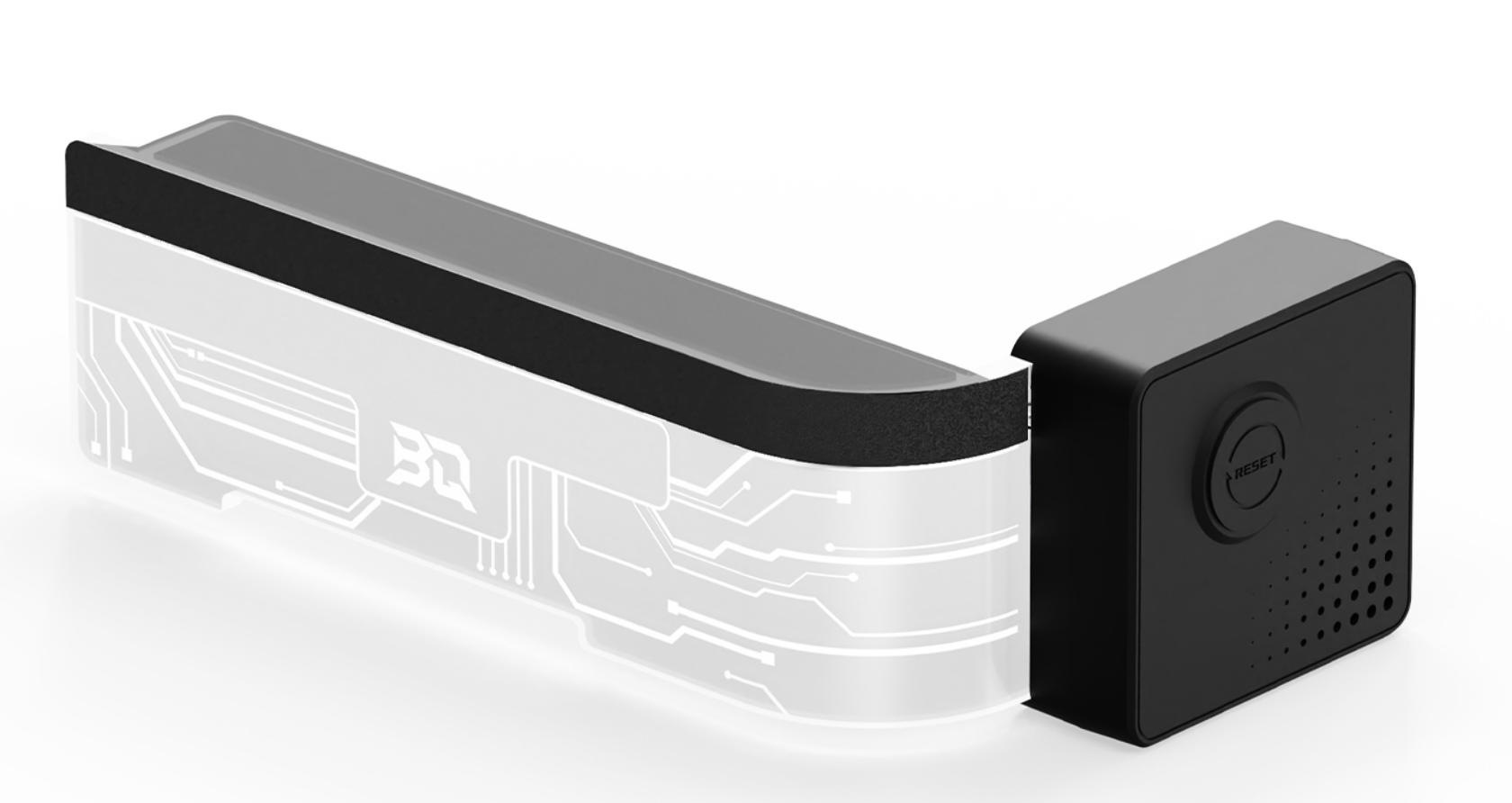 将Panda Alarm整体沿着打印机右上方的弧度放置并贴好双面胶,按压贴紧顶部双面胶。