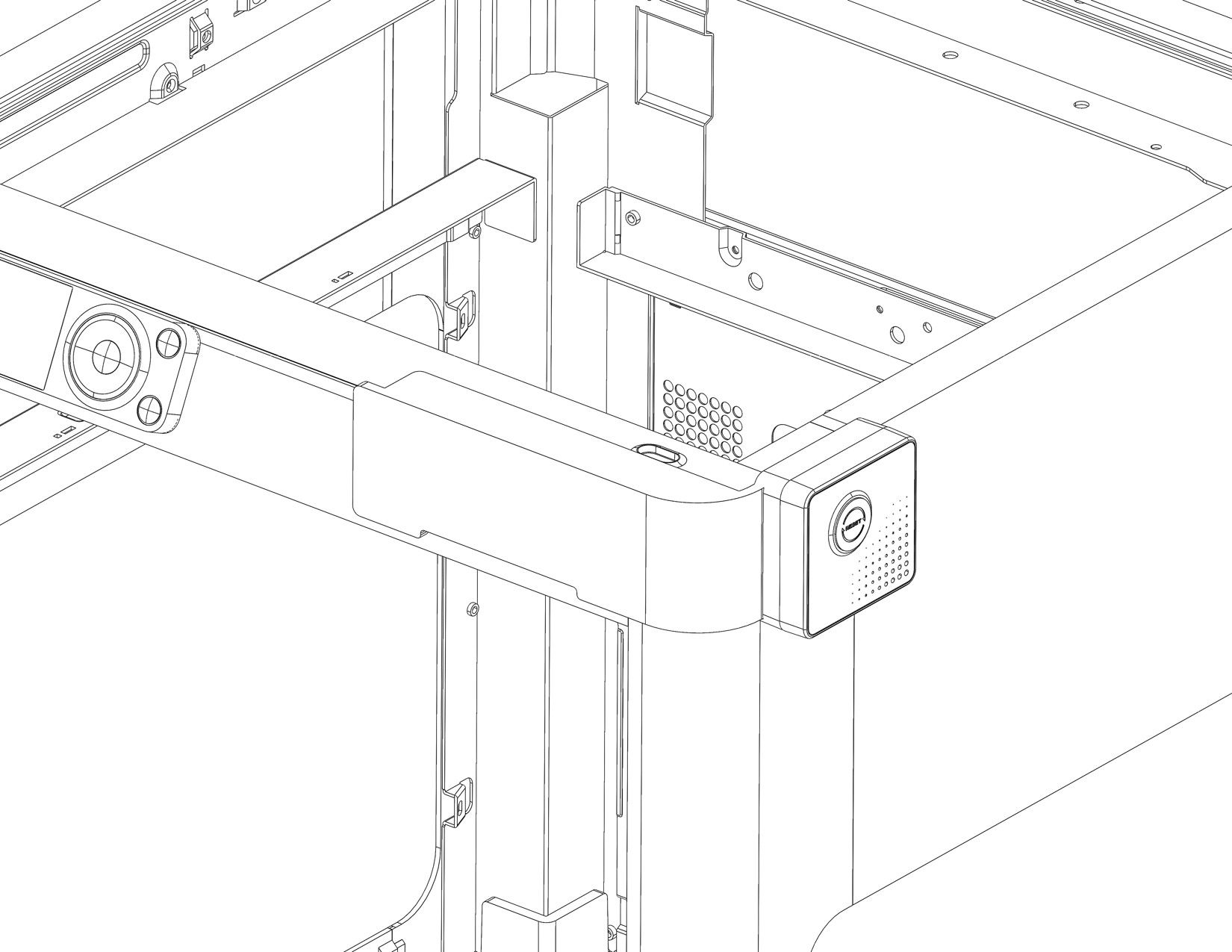 将Panda Alarm整体放置到P1打印机右上方,使灯板的弧度贴近打印机的弧度,确定控制盒背面磁吸的位置,用附带的磁贴片贴在打印机对应的位置上。