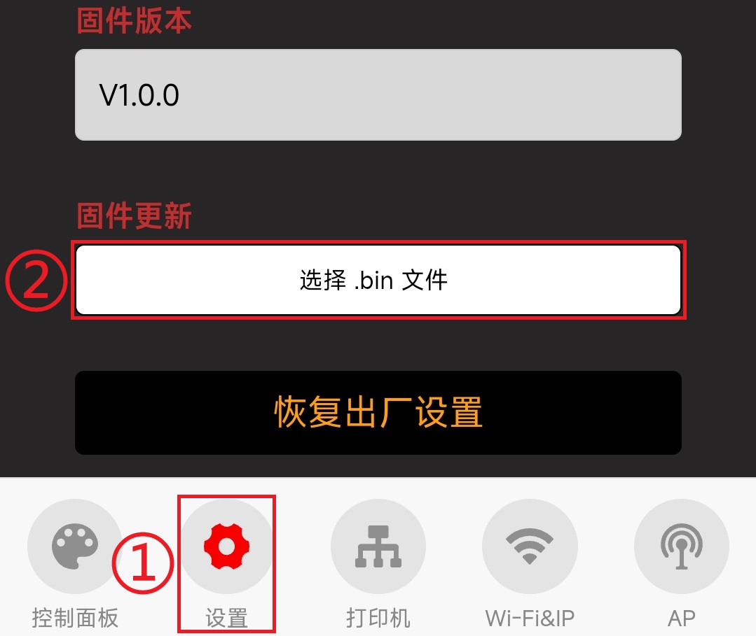 , 然后选择要更新的固件, 更新完成后设备会自动重启。