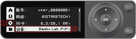 注意:如果访问码的位置是空白的没有内容,可能是打印机处于云模式并且未绑定云账号,请使用Bambu Handy/Bambu Studio 将此打印机绑定到云账号上,或者打开打印机的