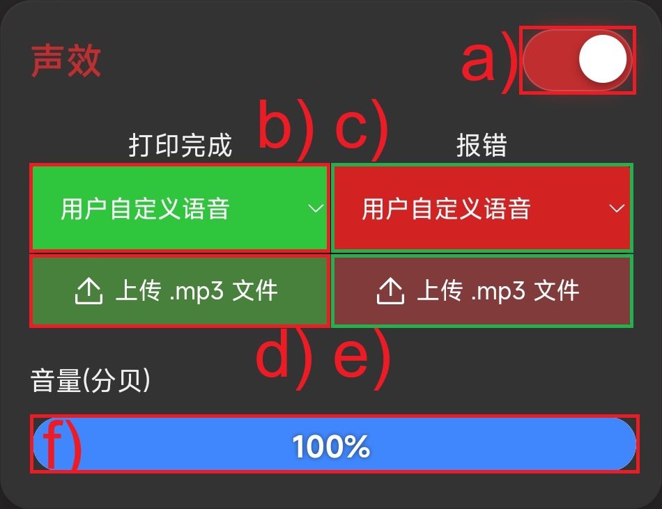 打印完成和打印异常(打印失败、插入耗材等)声光报警;