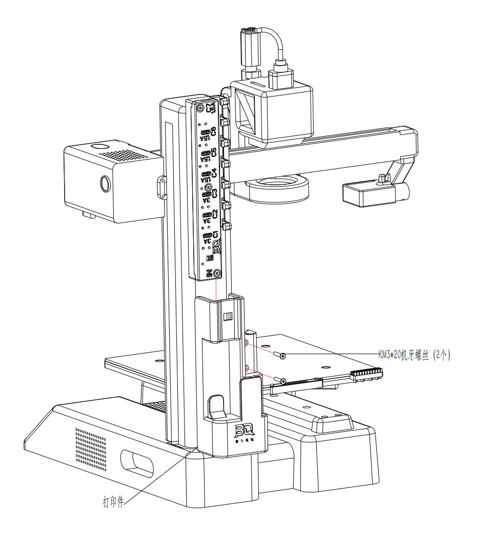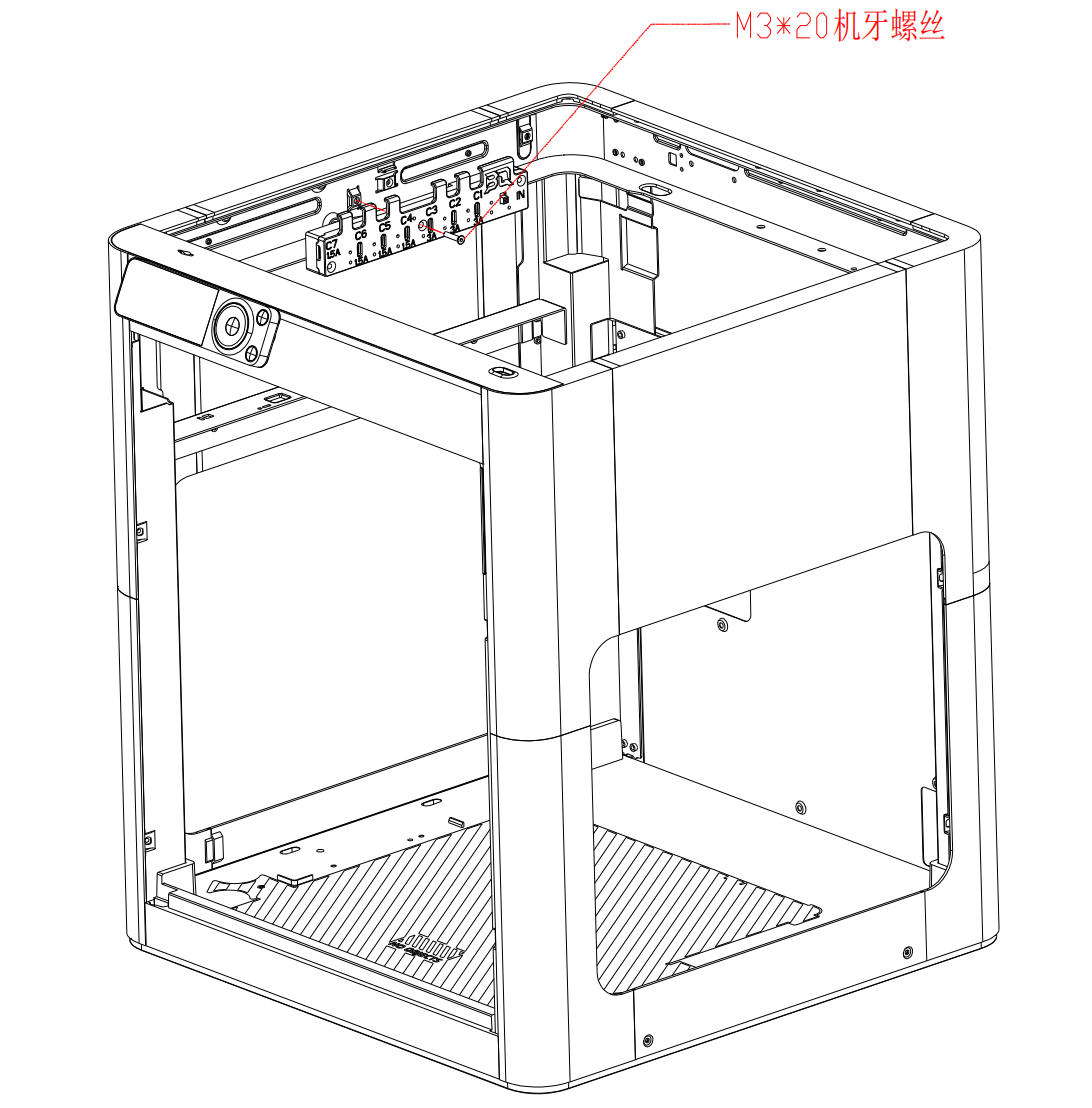 将打印好的支架放入如图对应的位置,用M3*20机牙螺丝固定。