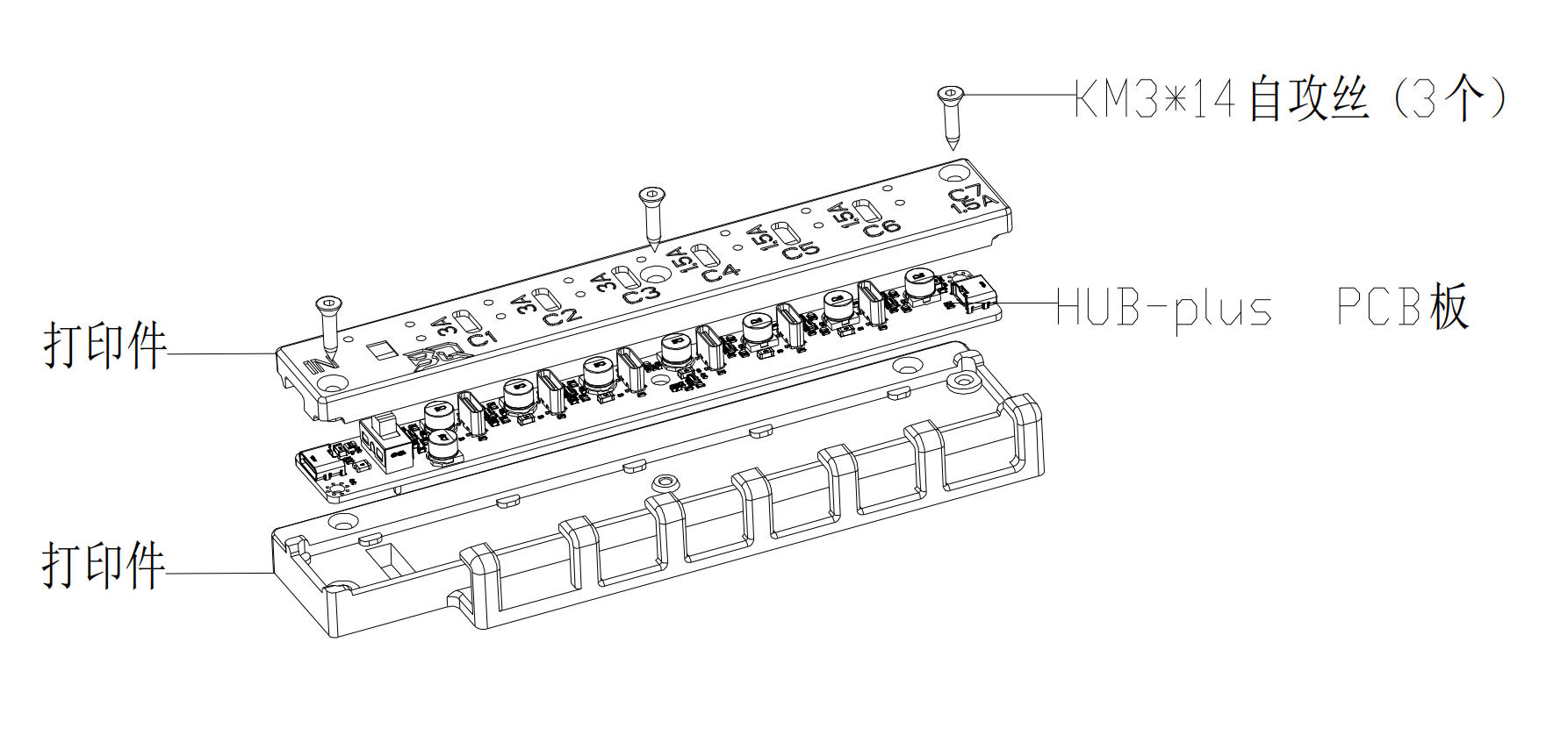 将PCB板放入打印好的上下壳内,用KM3*14自攻螺丝固定好。
