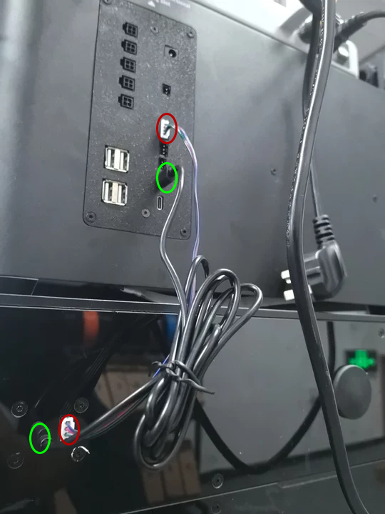 将Controller包装盒内如图所示编号为5的线,插入红色标识的口控制底部RGB灯条。将2号线插入绿色标识的口给内部照明灯条供电(Naked Panda Station需购买内部照明套件才可使用)