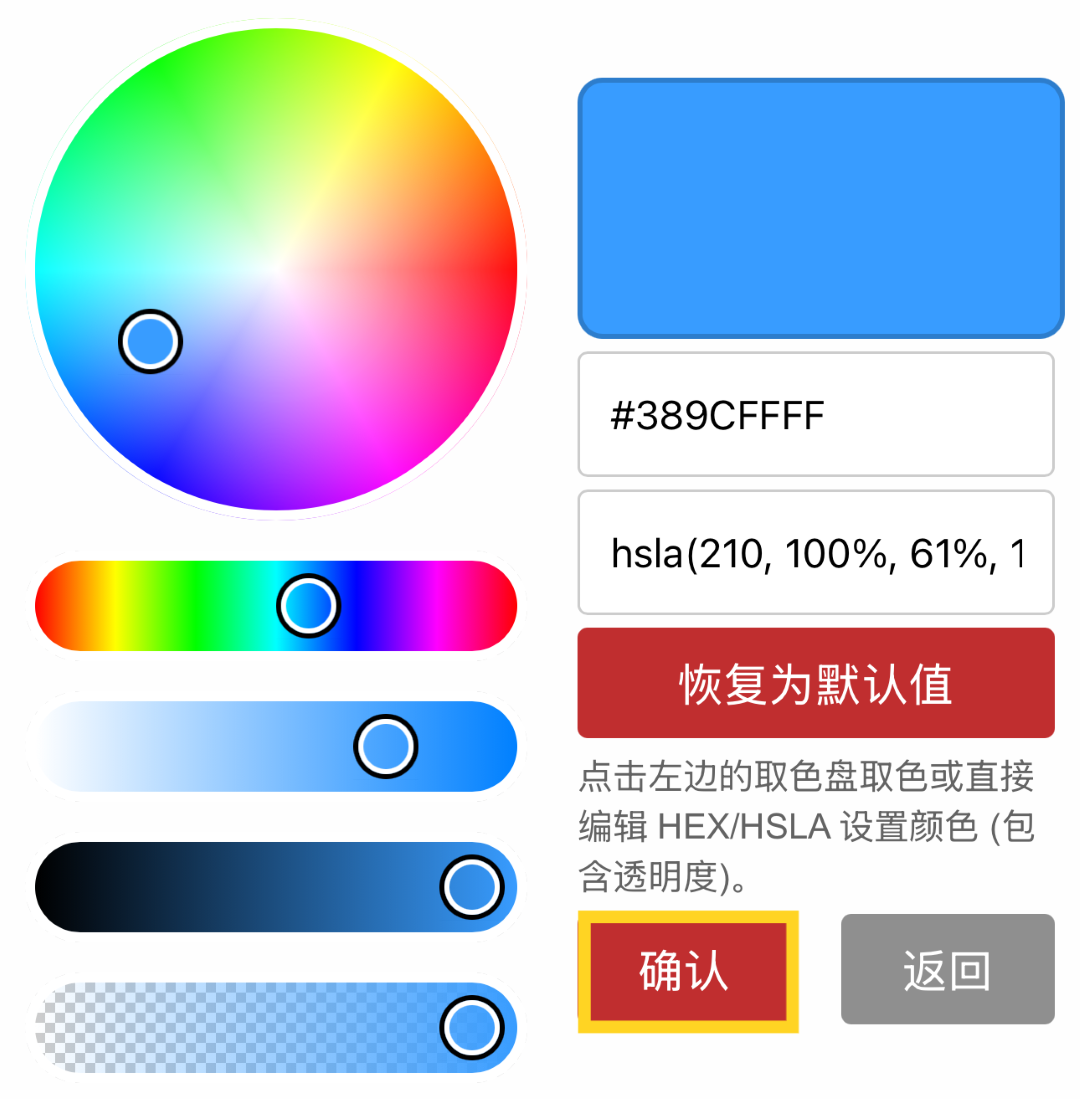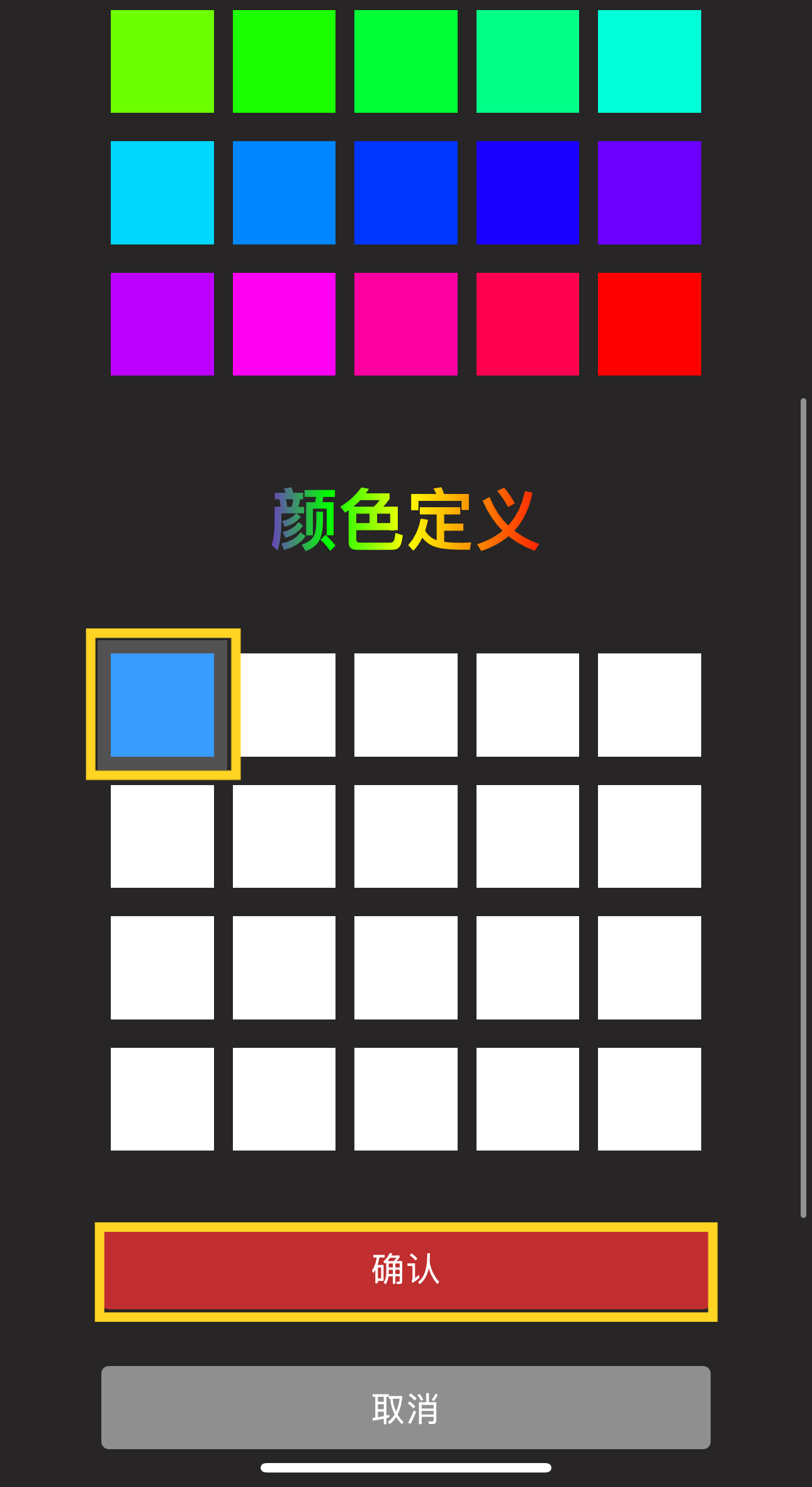 选择一个自定义色块后,单击“确认”。则可以将RGB设置为您的所选颜色。
