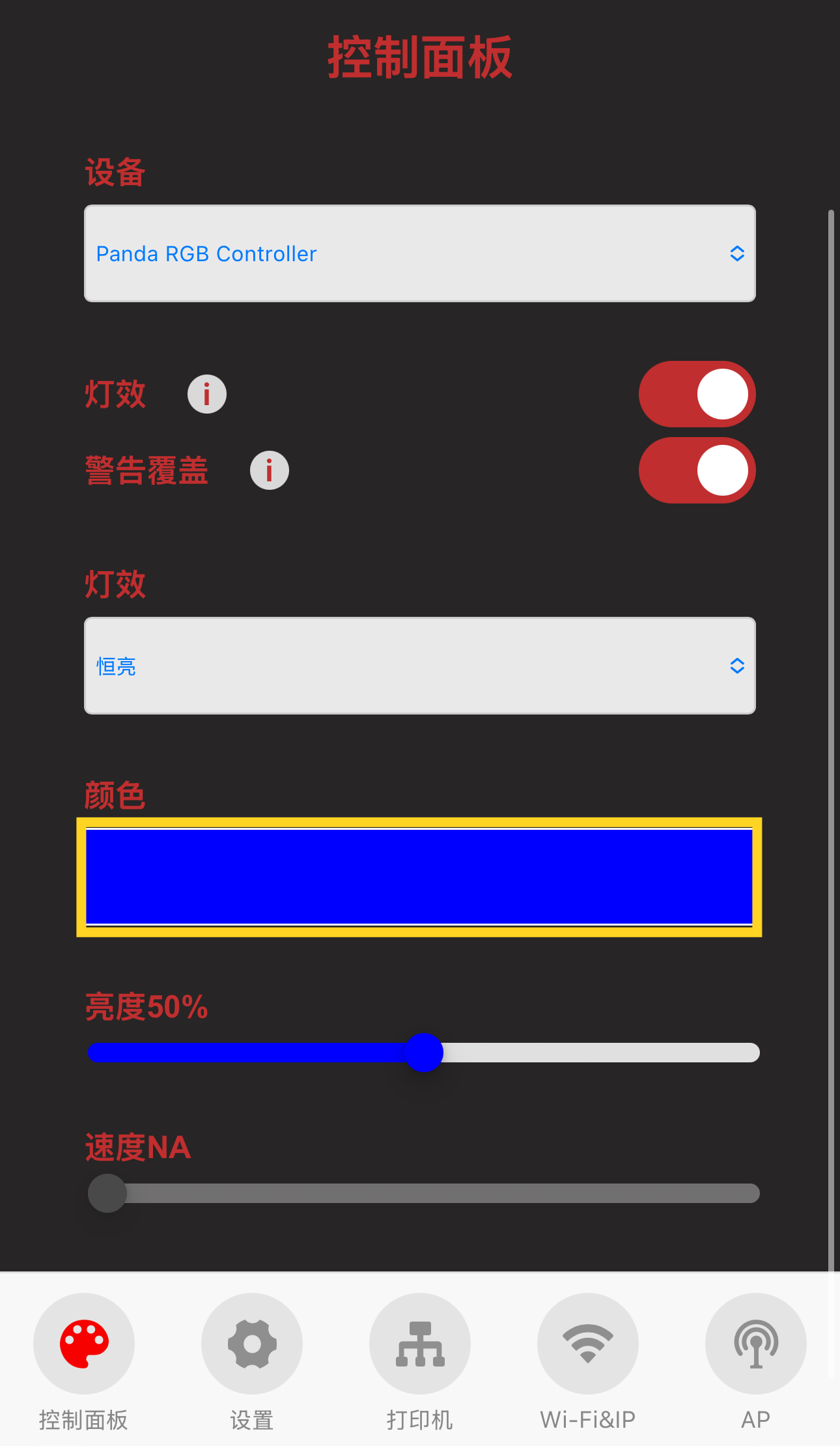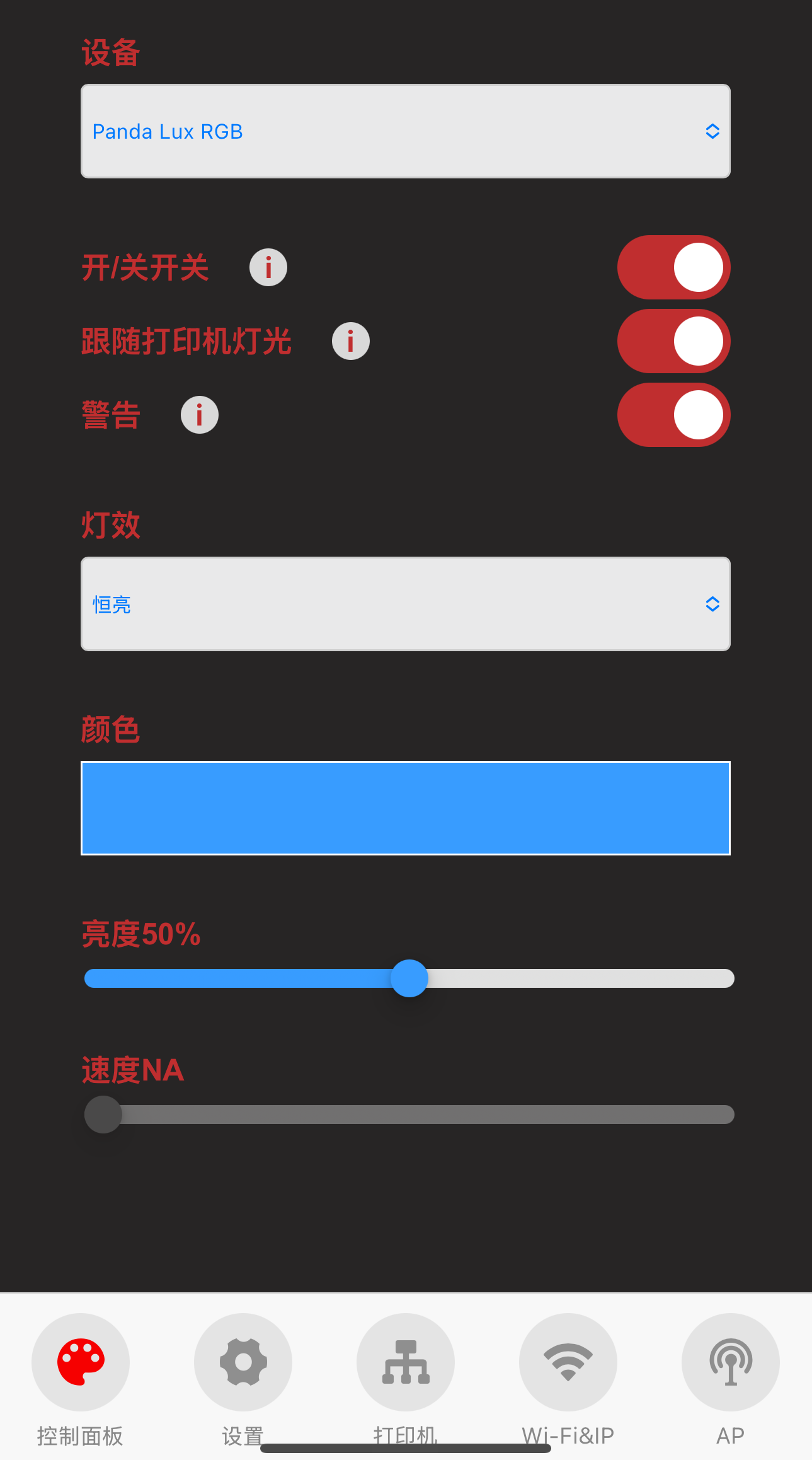 Panda RGB Controller是一款用于无线控制RGB灯带的产品,搭配外接的RGB灯条,可与打印机联动。